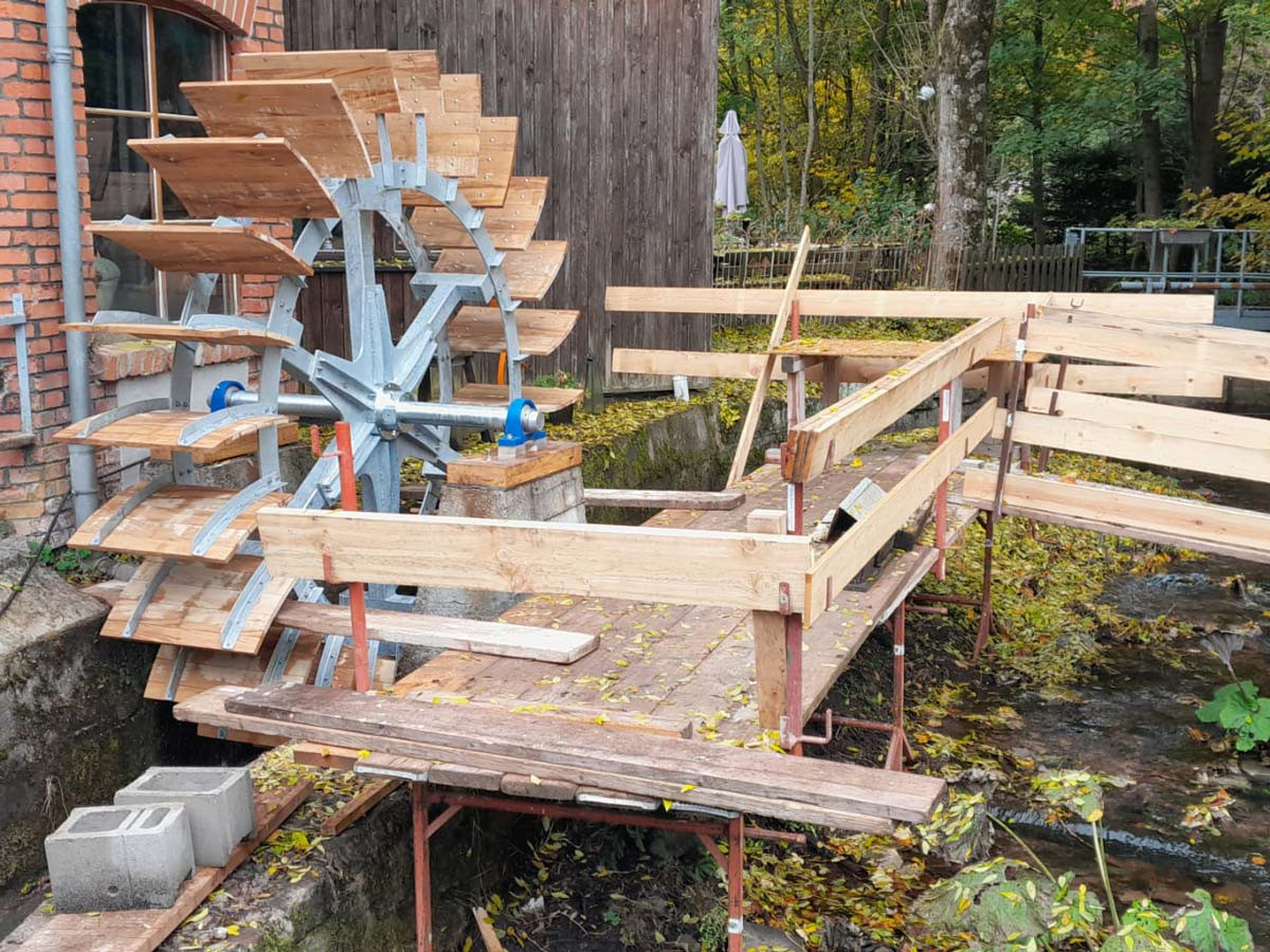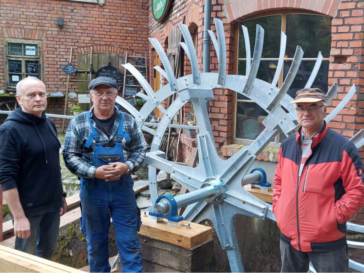 Nun ist es geschafft: Das neue Mühlrad wurde installiert, und ist wieder vollständig funktionsfähig. Dank der gemeinsamen Anstrengung vieler Unterstützer, dem Engagement der Gemeinde, der Fördermittel und der tatkräftigen Mitwirkung des Heimatvereins und Unterstützern aus der Bevölkerung dreht sich das Mühlrad wieder – und damit ist auch das Bild des technischen Denkmals wieder komplett.