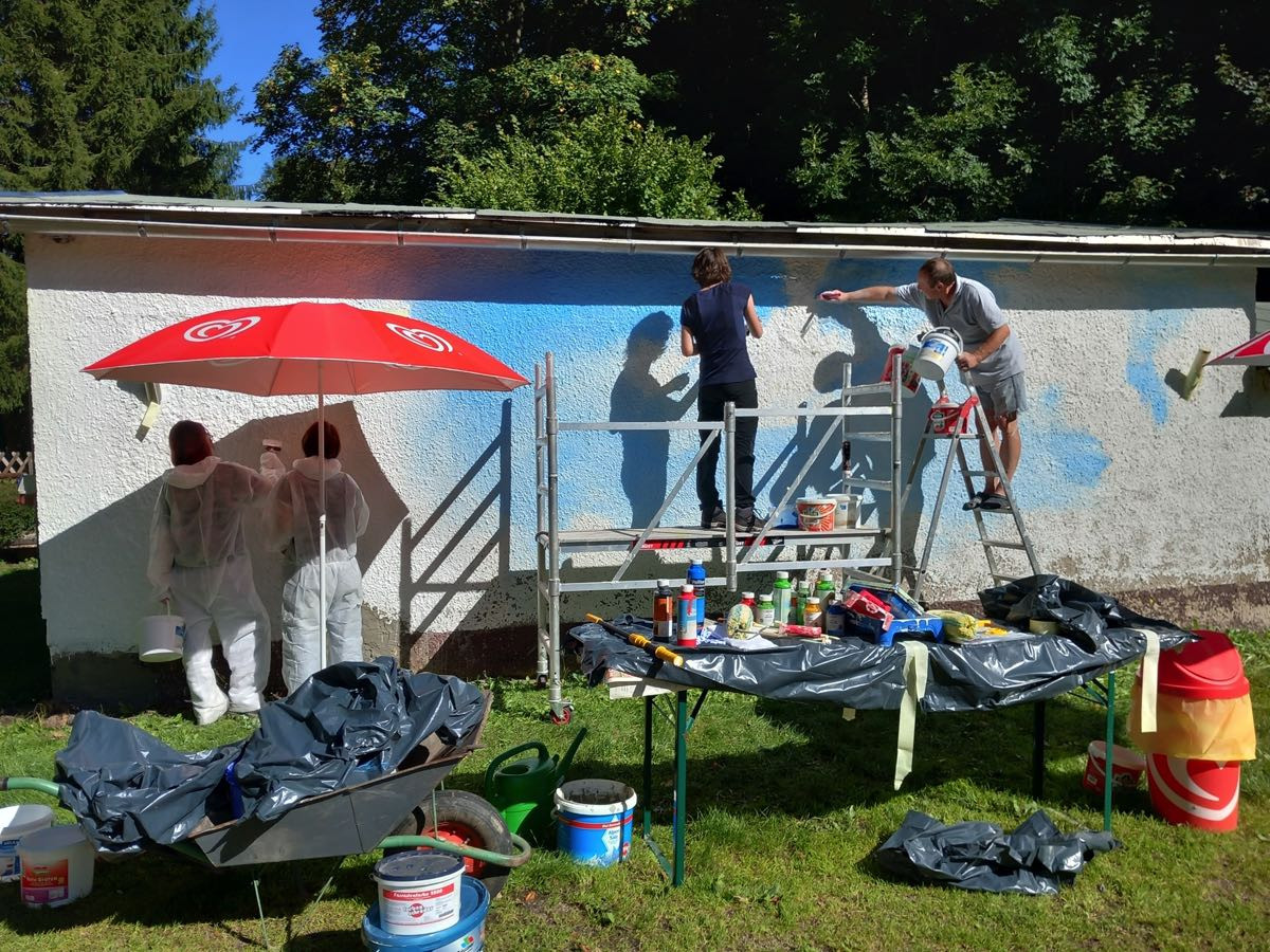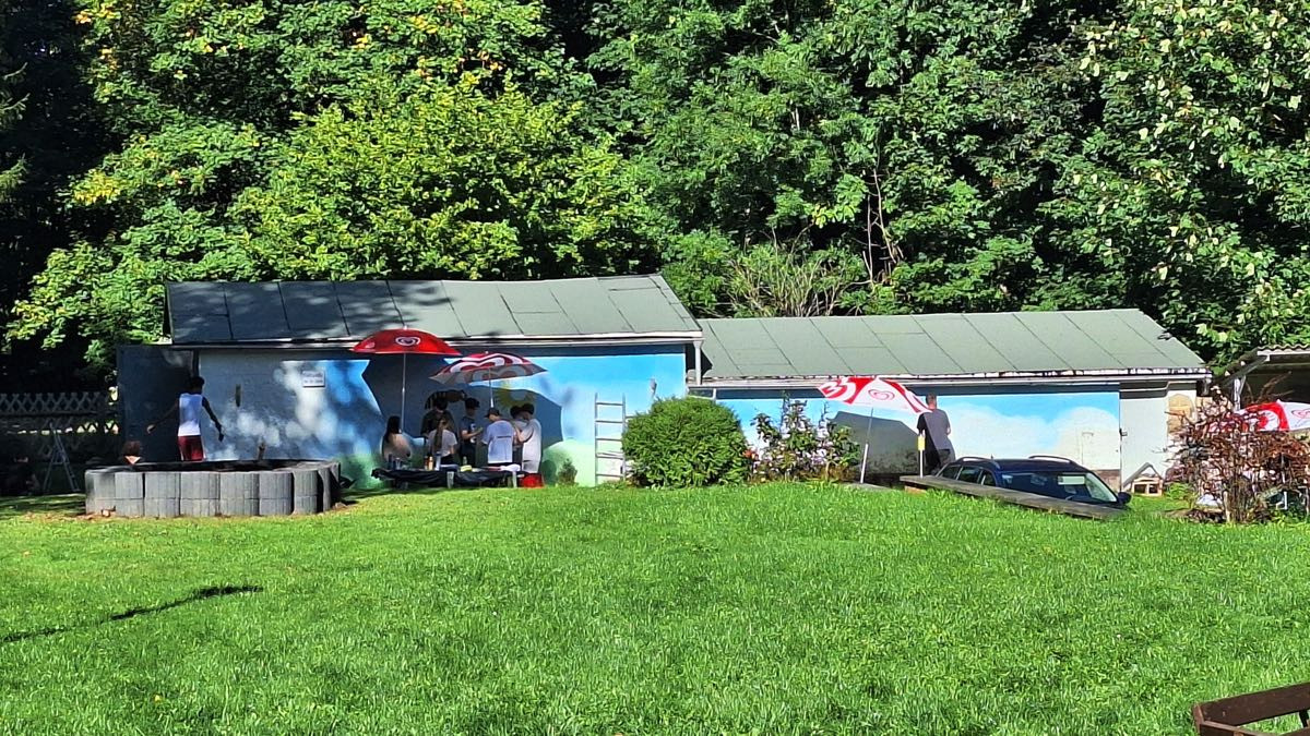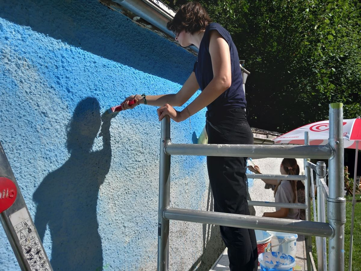 Ein Höhepunkt des Aufenthalts war die Gestaltung einer sonnigen Außenwand unseres Schullandheims. Hier entstand ein farbenfrohes Bild, das nicht nur Kreativität ausstrahlt, sondern auch eine Botschaft trägt: