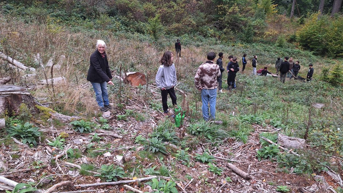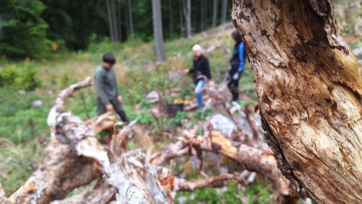 Im Frühjahr musste hinter dem Schullandheim ein ganzer Hang in der Pflegezone abgeholzt werden. Der Borkenkäfer hatte dort massive Schäden hinterlassen. Für uns war klar: Wenn ein Wald sich verändert, können wir helfen, ihn neu aufzubauen.