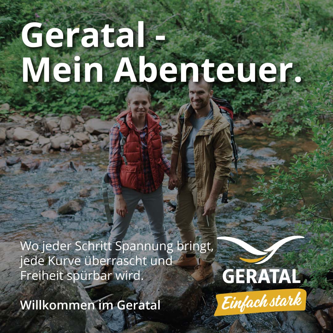 Im Geratal findest du die Wege, die deinen Mut wecken. Erzähl uns von deinem persönlichen Abenteuer: Vielleicht war es eine spontane Tour, ein Gipfelmoment oder ein Erlebnis, das dich überrascht und begeistert hat.
