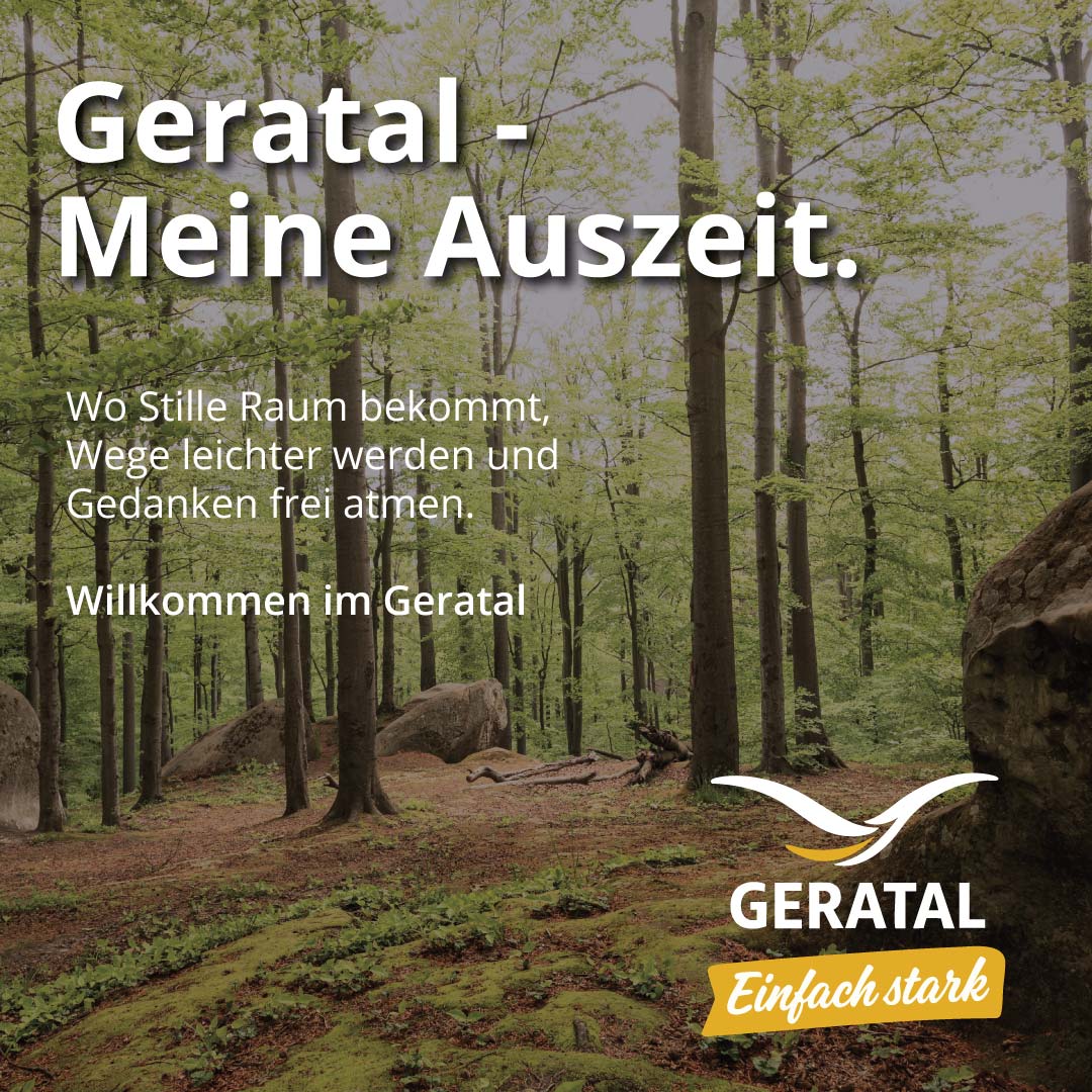 Im Geratal findest du die Stille, die dir im Alltag oft fehlt. Erzähl uns von deinem persönlichen Moment der Entspannung: Vielleicht war es ein stiller Waldspaziergang oder ein Sonnenuntergang, der dir die Hektik genommen hat.